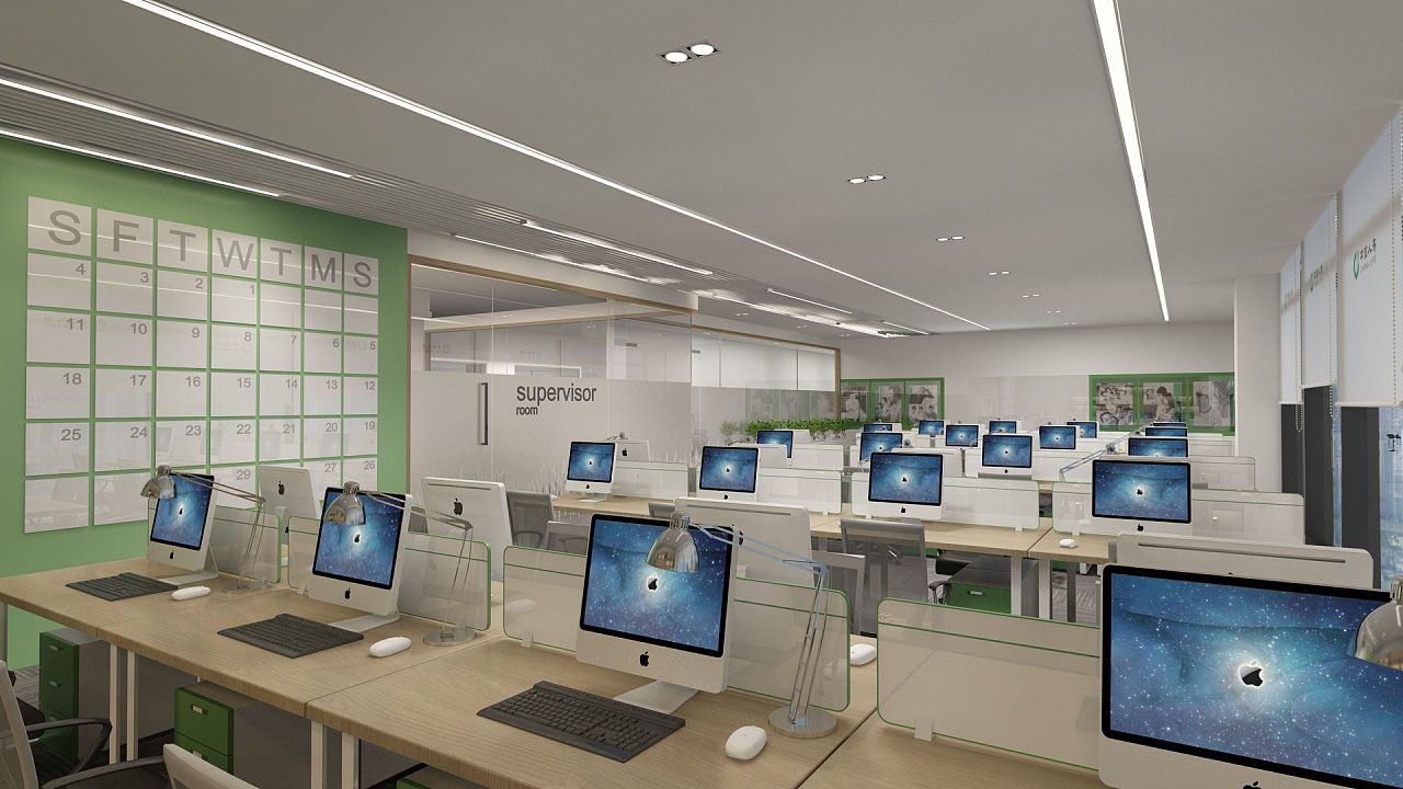 以線條和色彩構(gòu)成作為辦公室設(shè)計最基本的元素,線條可以回應(yīng)企業(yè)的文化及品牌特質(zhì),同時線與線之間的縫隙可以讓光穿過,避免空間形成黑房子,讓光線最大化地進入場所又能保持空間的美感。極簡的白和企業(yè)本來的綠色,用干凈的線條,設(shè)計出不平凡的藝術(shù)空間。