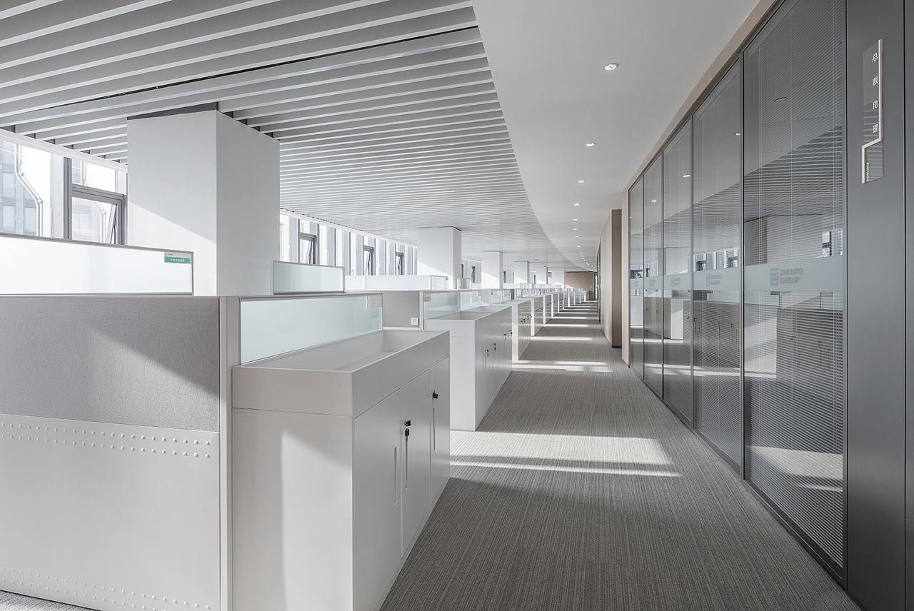 本次企業辦公樓設計,從建筑和企業的本身出發,將建筑與室內、企業的核心價值置入設計當中思考,使用現代時尚化風格表現手法,通過對企業的成長與未來,在建筑體之內建造出一座具有企業精神文化氣息的空間,在設計當中有新的暢想。打破常規的辦公功能又不斷回應著人們的辦公需求,整體設計以簡約、時尚的氣度,熱情大方地擁抱著每一位來訪者。